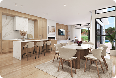 To create residences that elevate everyday life — where natural light, generous proportions, and considered finishes come together in perfect harmony. Homes that balance form and function, from statement stone-wrapped kitchen islands that anchor daily rituals, to alfresco spaces designed for effortless year-round entertaining. Every space is carefully curated to provide a sense of calm, clarity and enduring comfort — thoughtfully tailored to support the way you live, now and into the future.